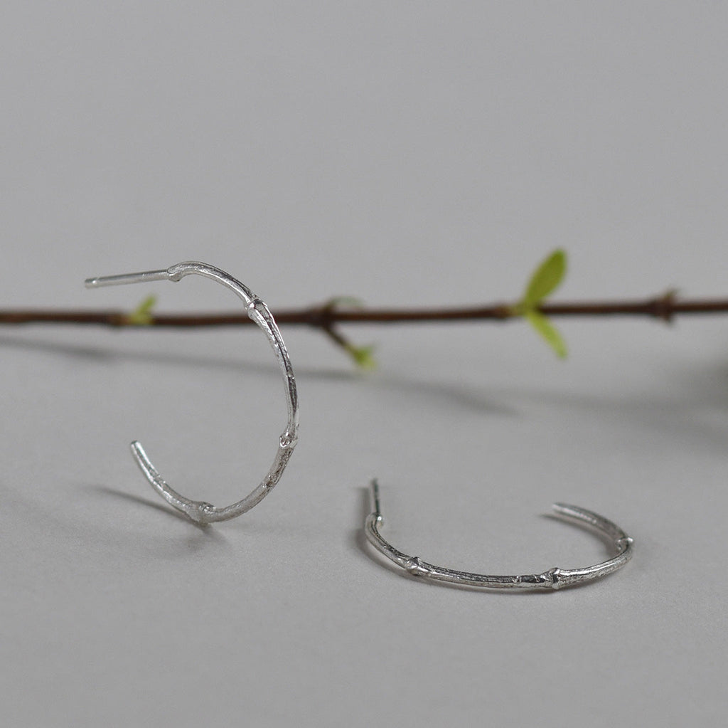 The Abelia Twig Hoop Earrings are made to order, please allow 2-3 weeks for the designer to make these for you.