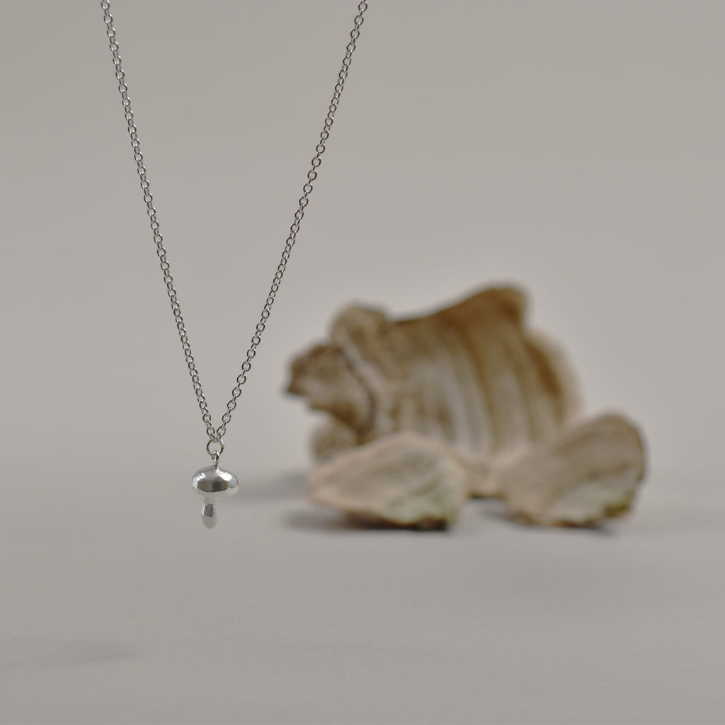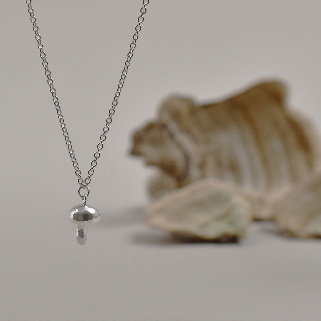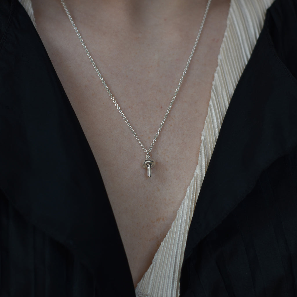 Available in Bright Silver and 14K Yellow Gold. The Mushroom Necklace is made to order, please allow 2-3 weeks for the designer to make this for you.
