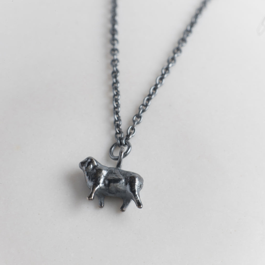 Hand-cast Sheep, approximate size 7x6mm attached to sturdy cable chain approximate lengths available in 16, 18, 20, or 22" with spring ring clasp.
