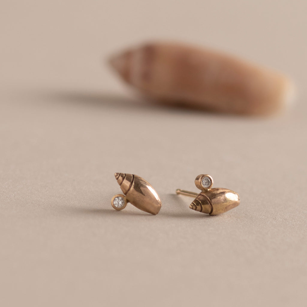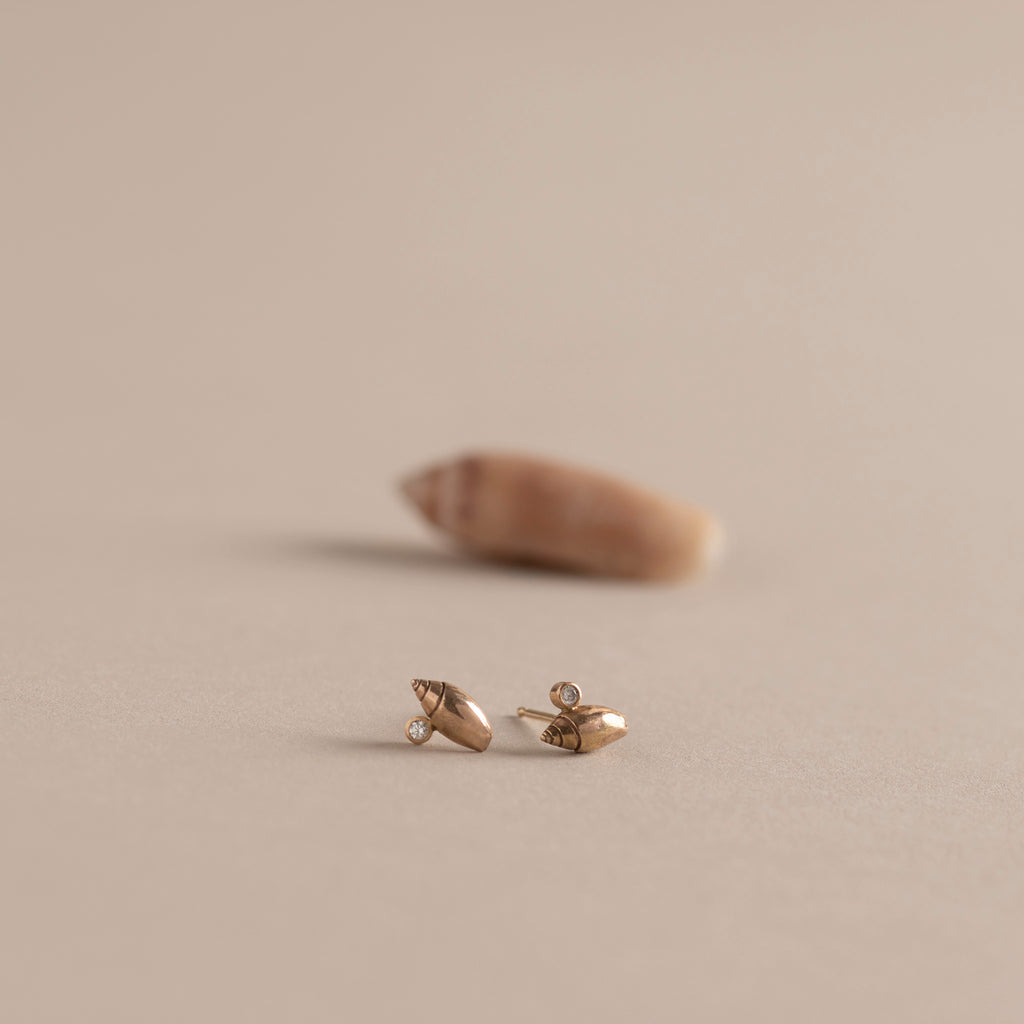 The Olive Shell & Diamond Post Earrings are made to order, please allow 2-4 weeks for the designer to make this for you.