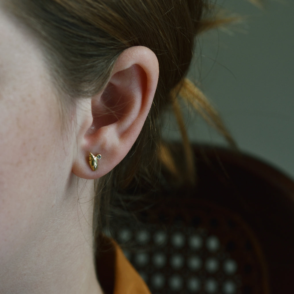 I used to live in Charleston, SC and the olive shell happens to represent the state shell. With this petite version, I just had to add a tiny diamond for a dynamic, but dainty post.